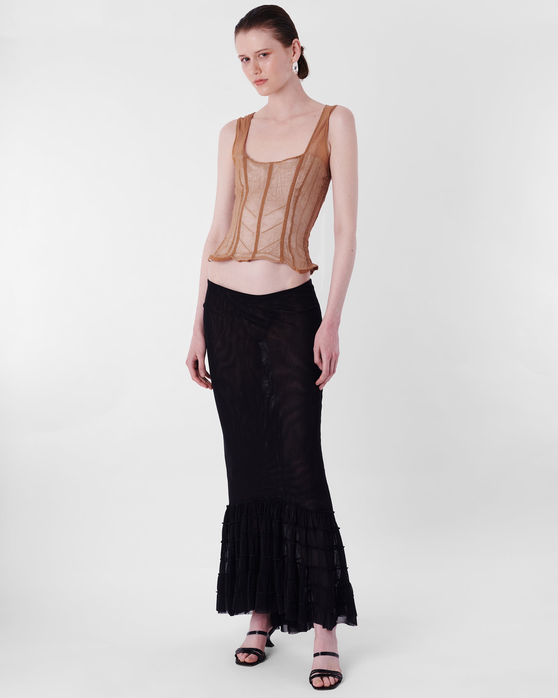 Incredibly rare Dolce & Gabbana 1998 corset from the Stromboli collection. Features blue butterfly detailing, beige mesh net with seamed detailing, partial lining and zip back closure. In excellent vintage condition.