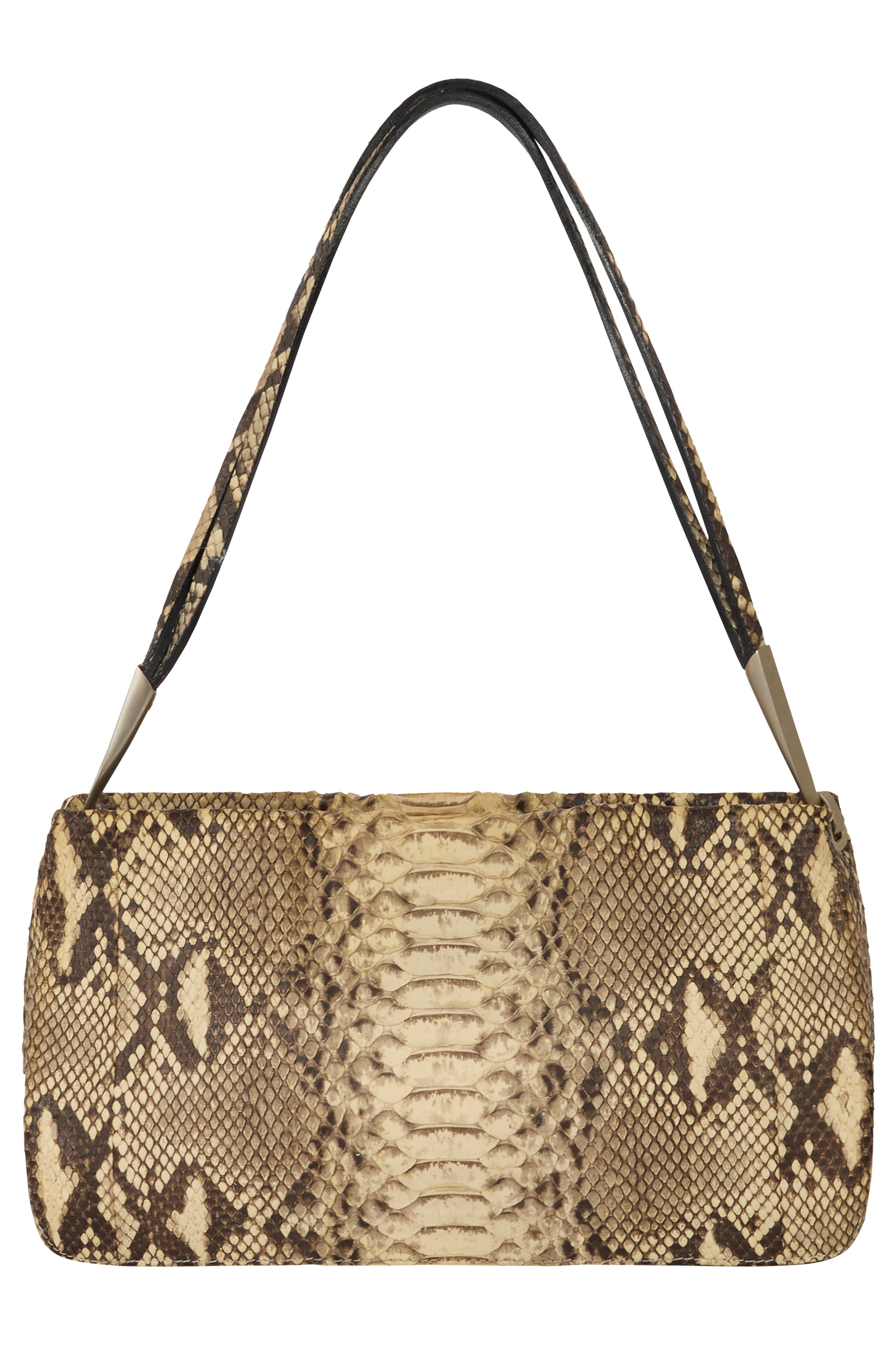 Vintage Bottega Veneta python shoulder bag, this shoulder bag is crafted from luxurious python leather. Slim leather shoulder strap finished with minimalist metal hardware. Inside pocket , fastens with a top zip closure.