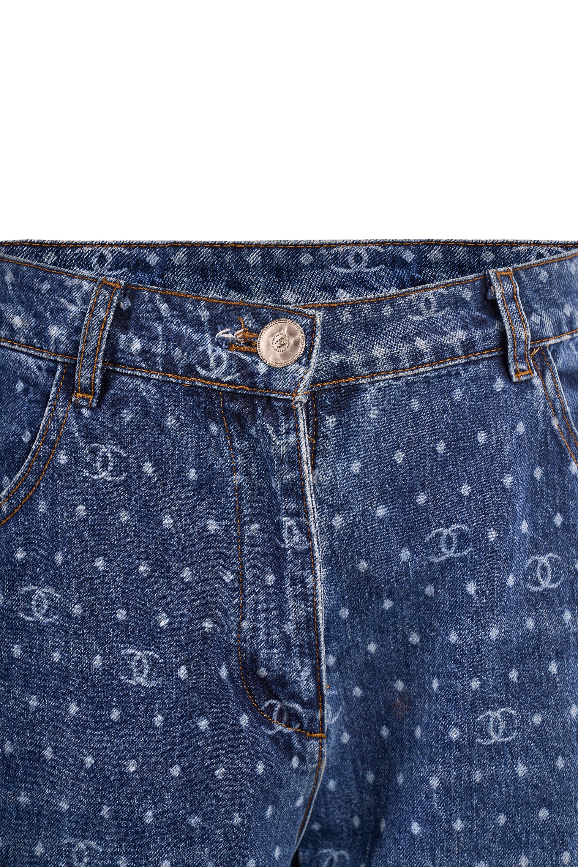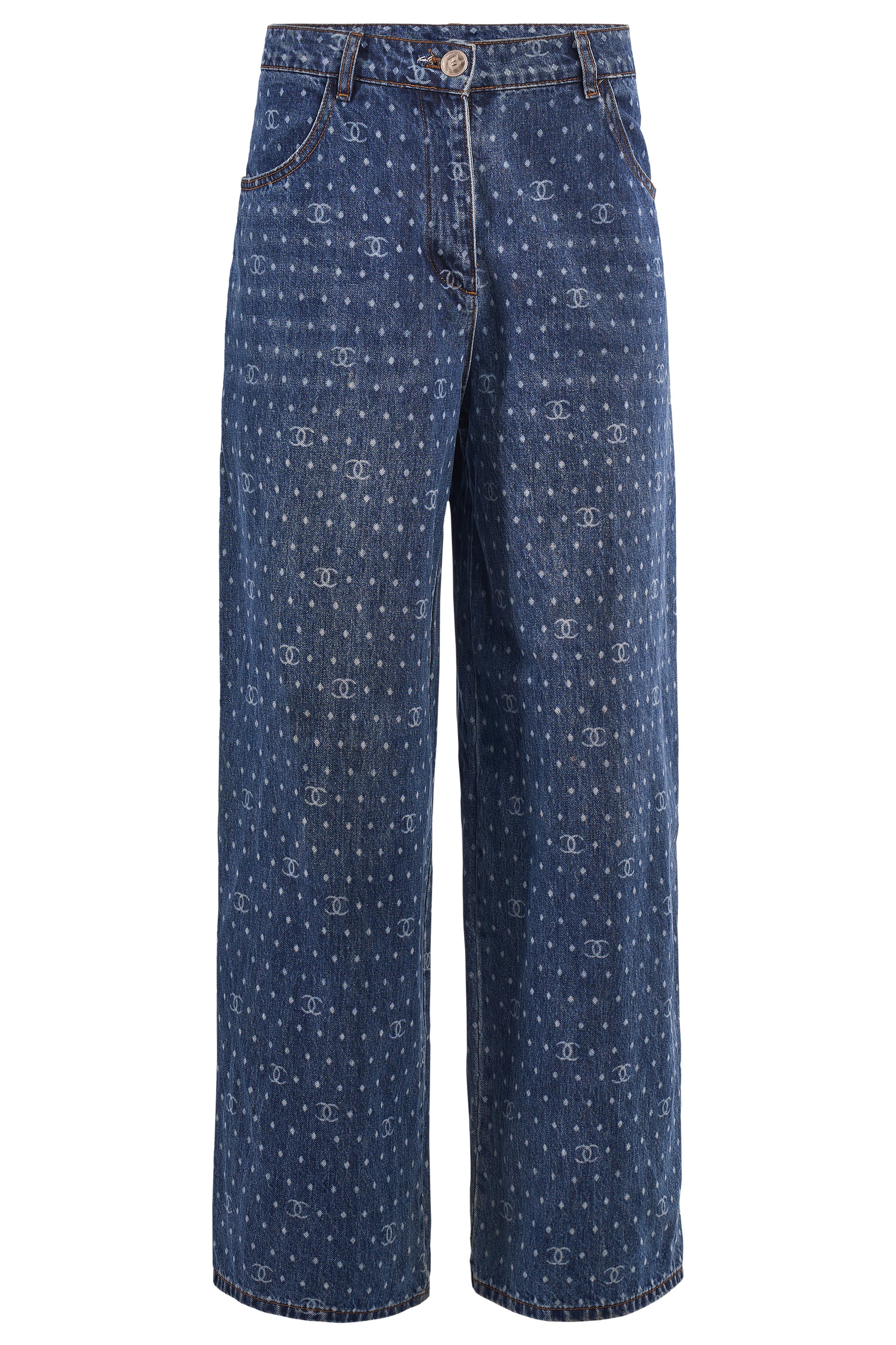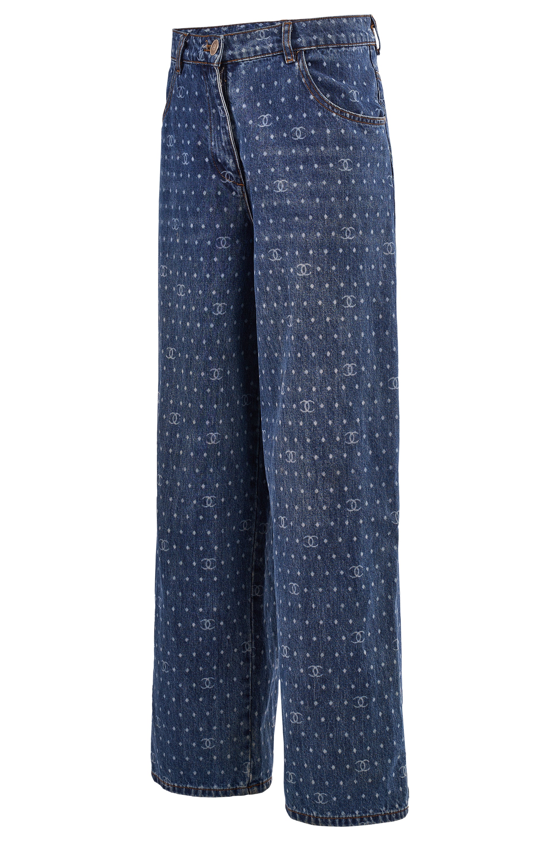 Chanel Wide Leg Denim "CC" Jeans. These jeans feature a wide leg fit, which can be styled baggy and either high or low waisted depending on your liking. Featuring the iconic "CC" logo throughout the back to front of the denim jeans. Circa 2000's. In excellent condition.