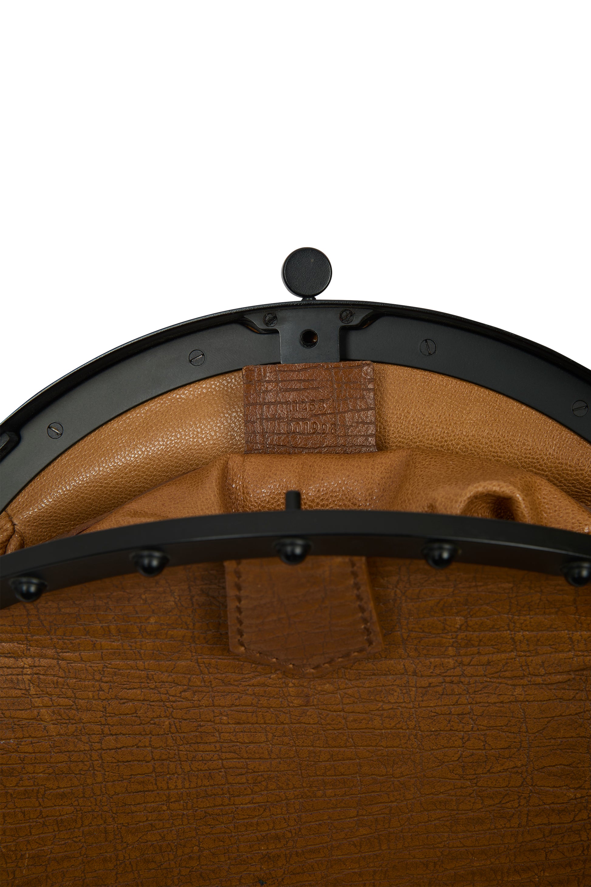 Vintage Gucci by Tom Ford Spring Summer 2003 collection. Features a camel body leather fabric, black mat metal hardware at the top . Main compartment with leather inside lining and inside zip pocket. Bamboo top handle and fastens with a push lock closure.