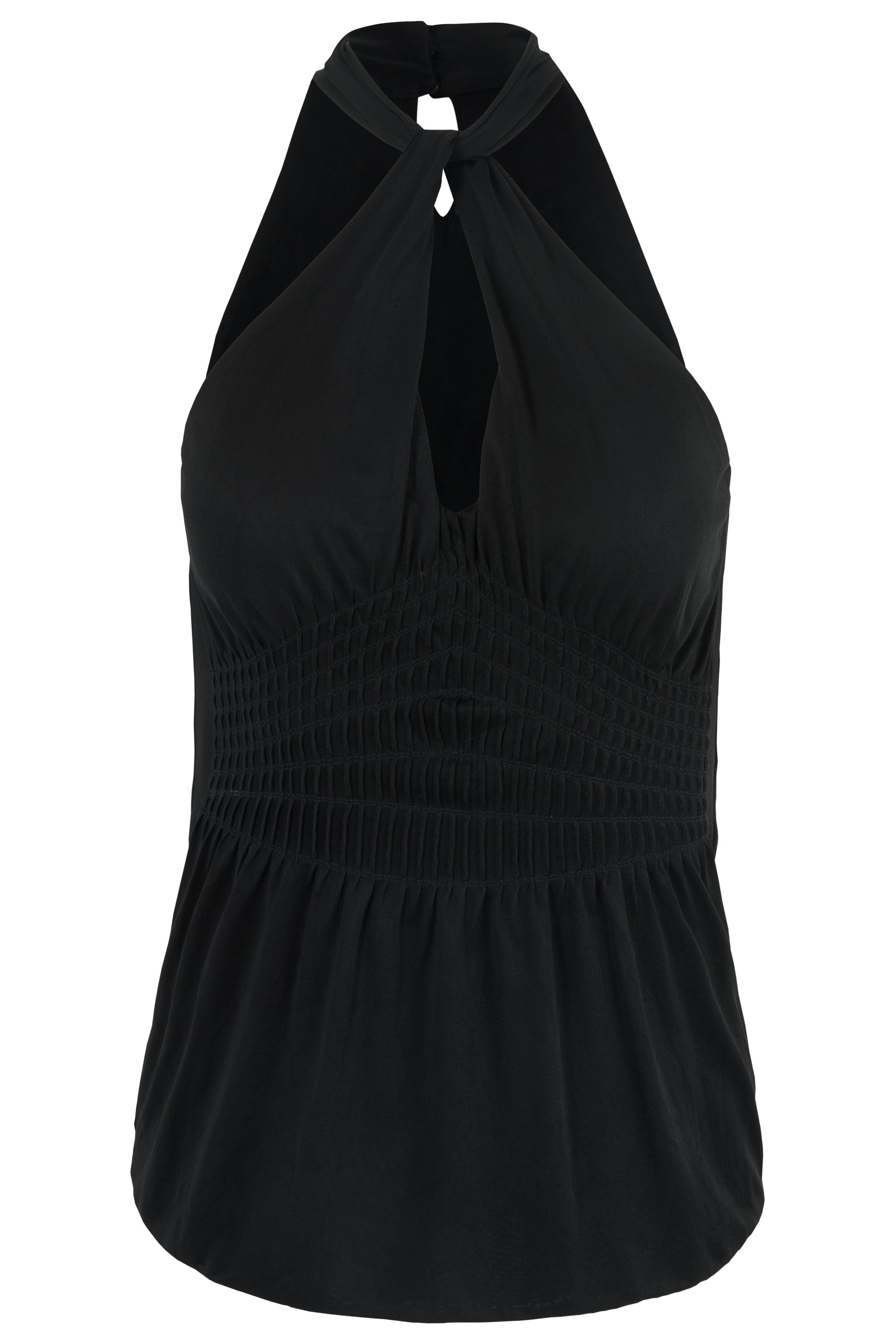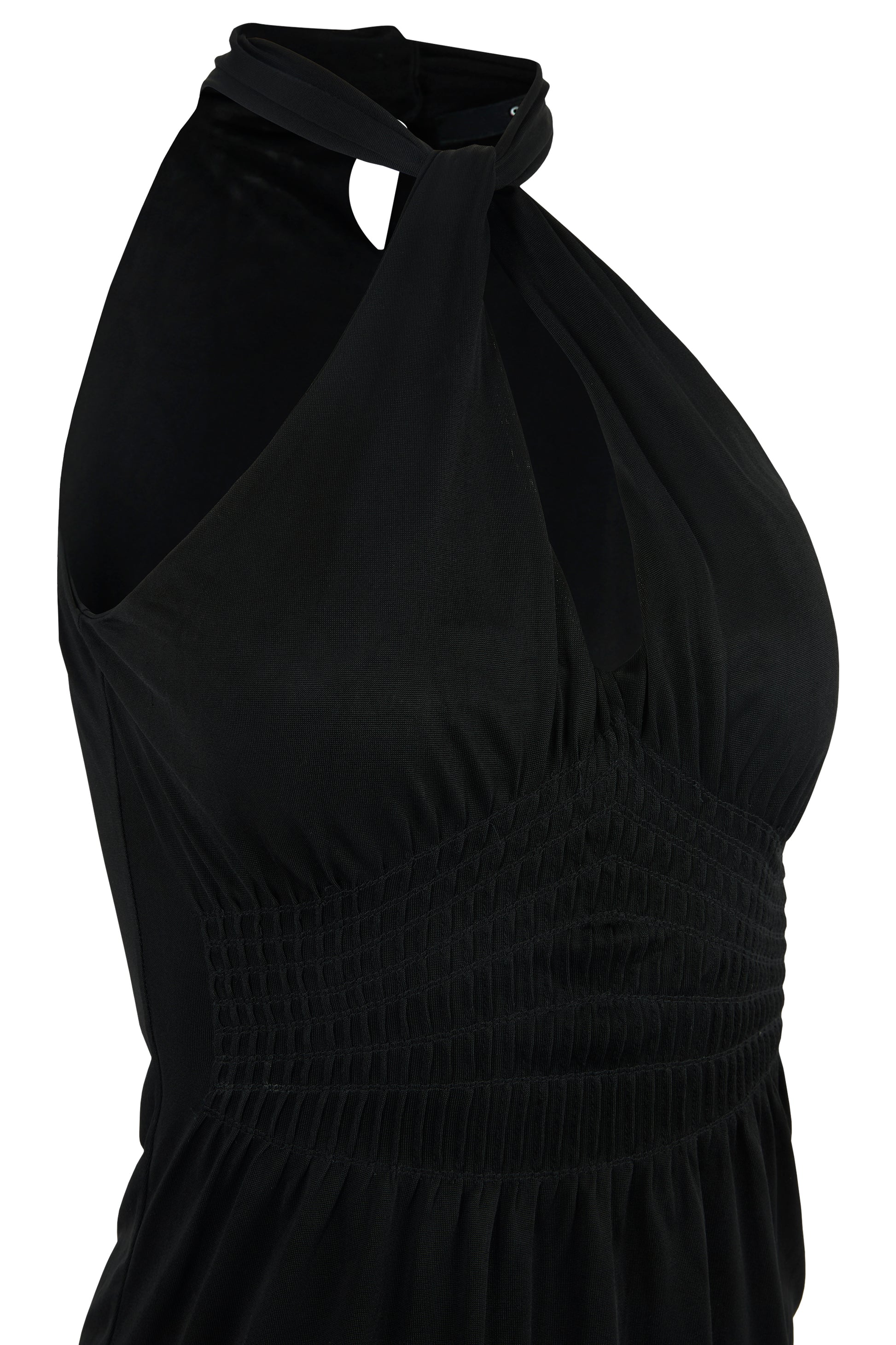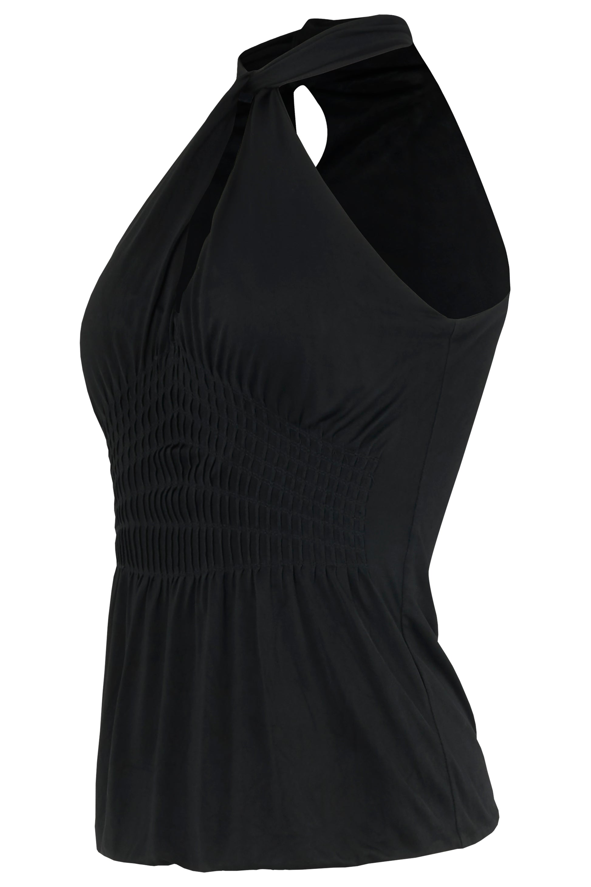 Vintage Gucci Tom Ford F/W 2003 black top wrap around tied-up halter neck. Features elastic pleats at the waist and draping at the bust. Snap buttons closure at the neck.