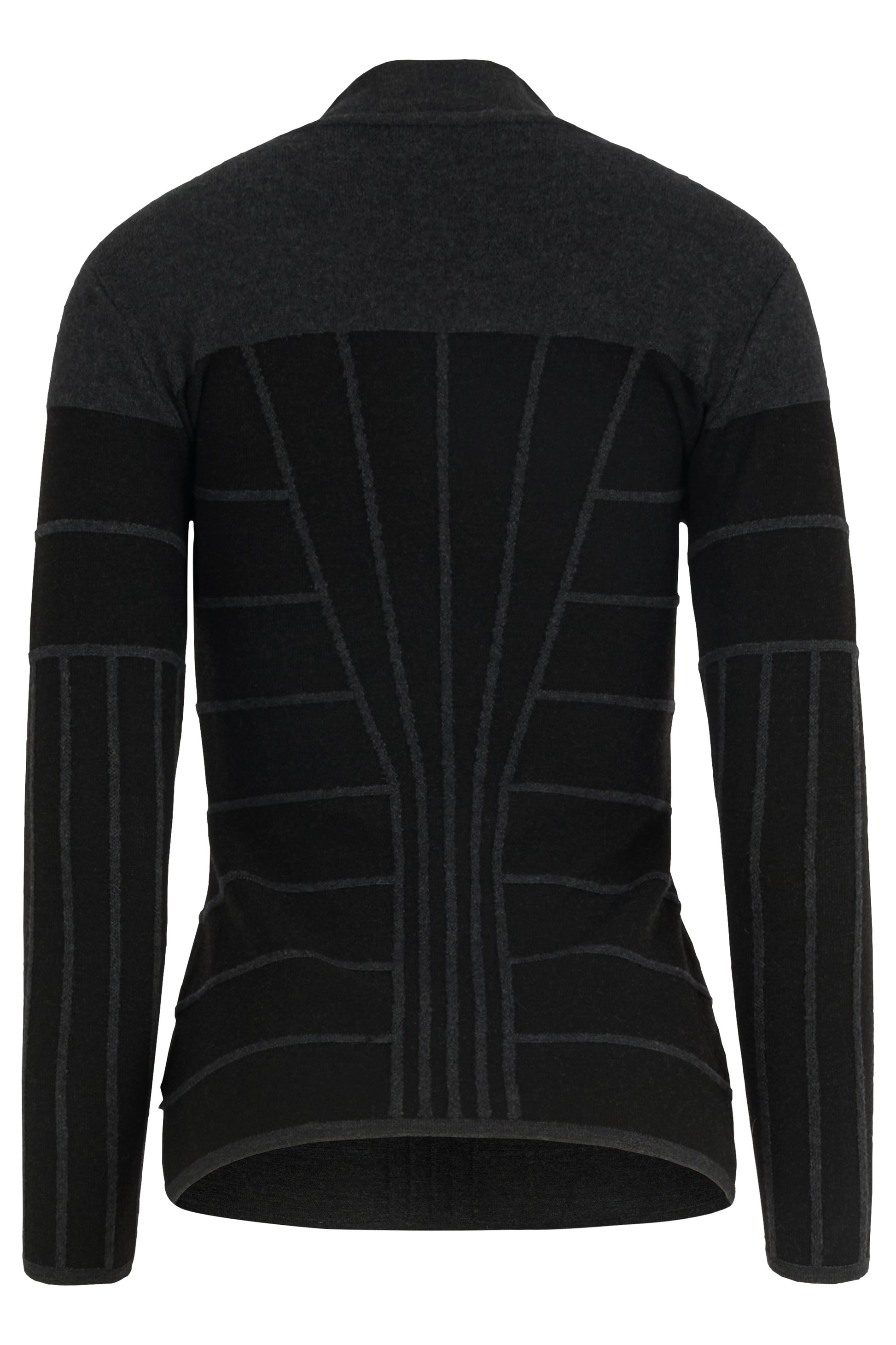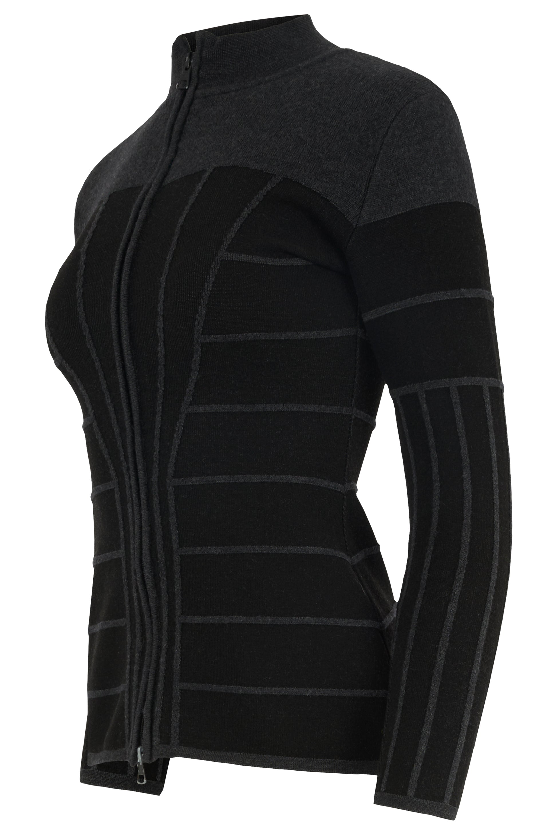 Vintage Montana Bodycon double zip gilet. Features grey and black geometrical pattern. 100% Wool Stretchy Knitted Sweater. In excellent vintage condition.