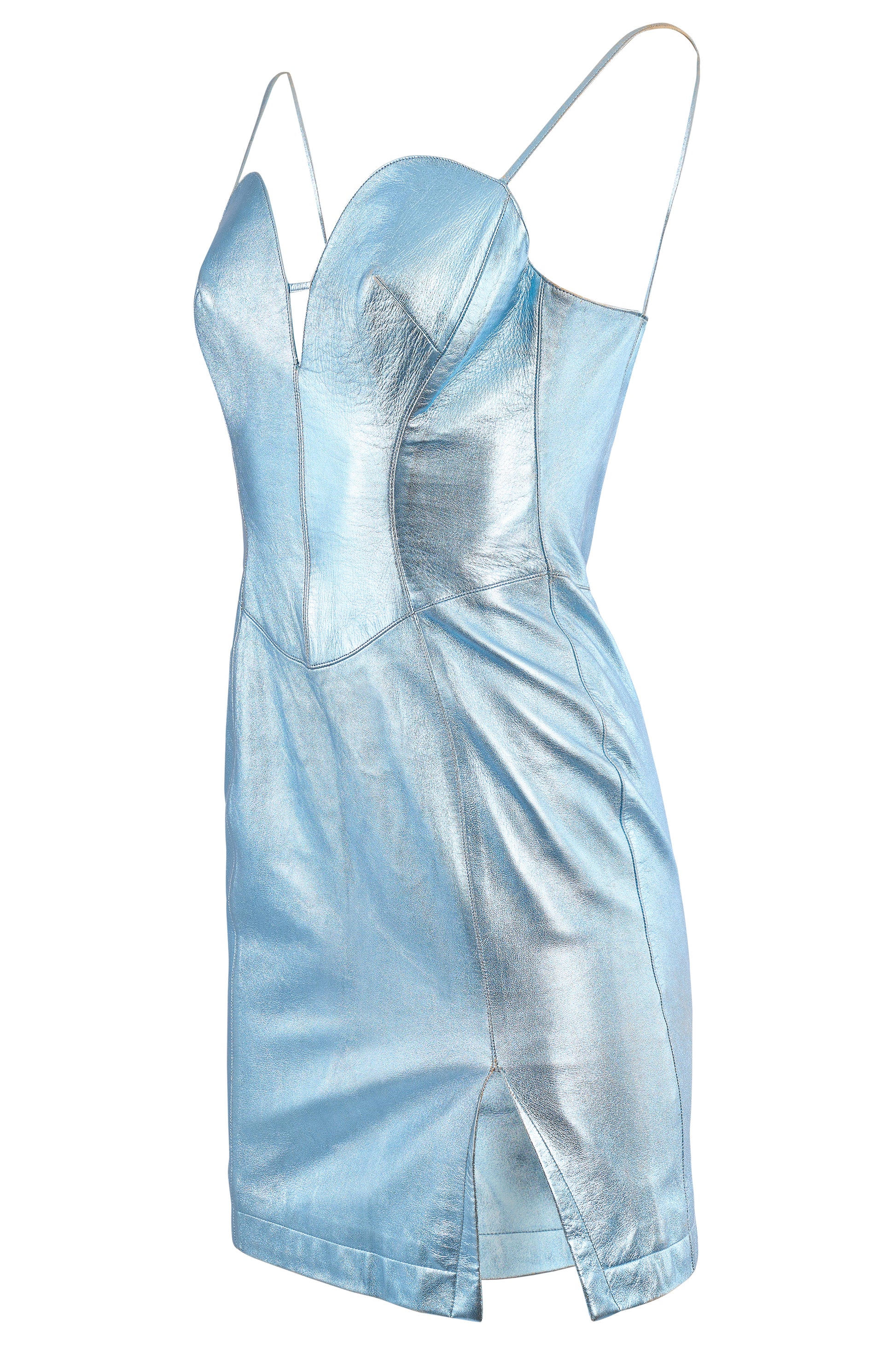 Vintage 1980's Thierry Mugler Couture Metallic Blue Leather Mini Dress