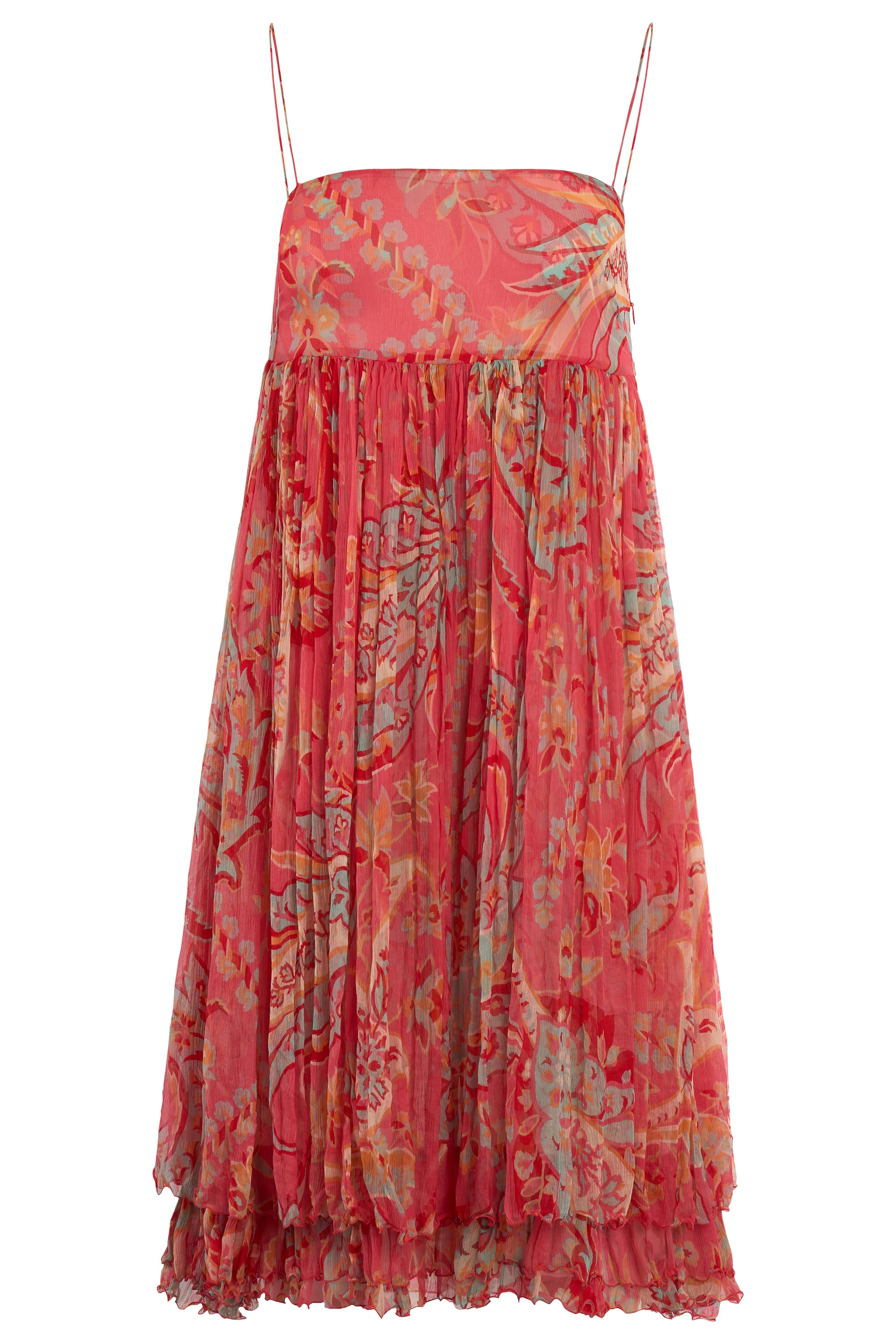 Vintage runway Blumarine Spring Summer 2005 orange print silk dress. Crafted in lightweight silk . Features spaghetti straps, double layers, floral motifs and pleated shape. Fastens with a concealed sid zip. In excellent vintage condition.