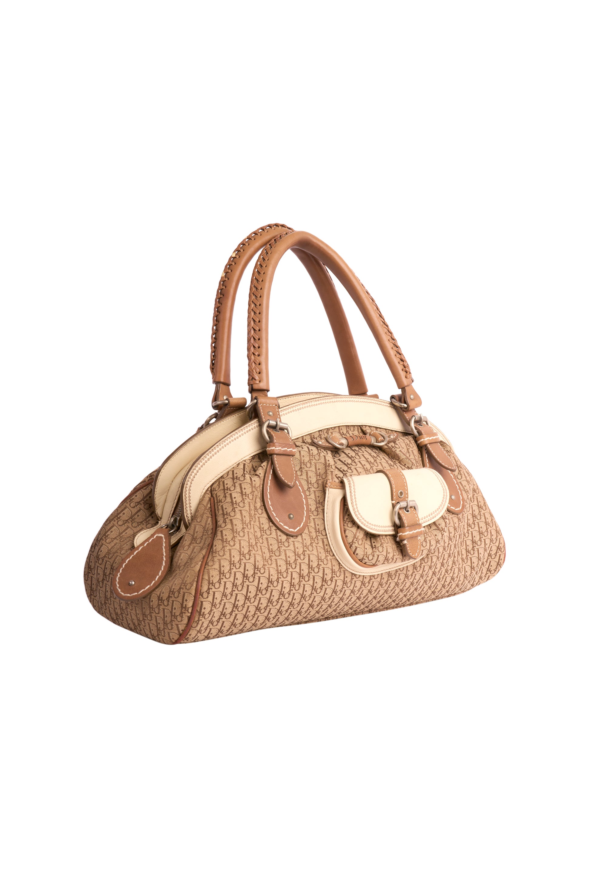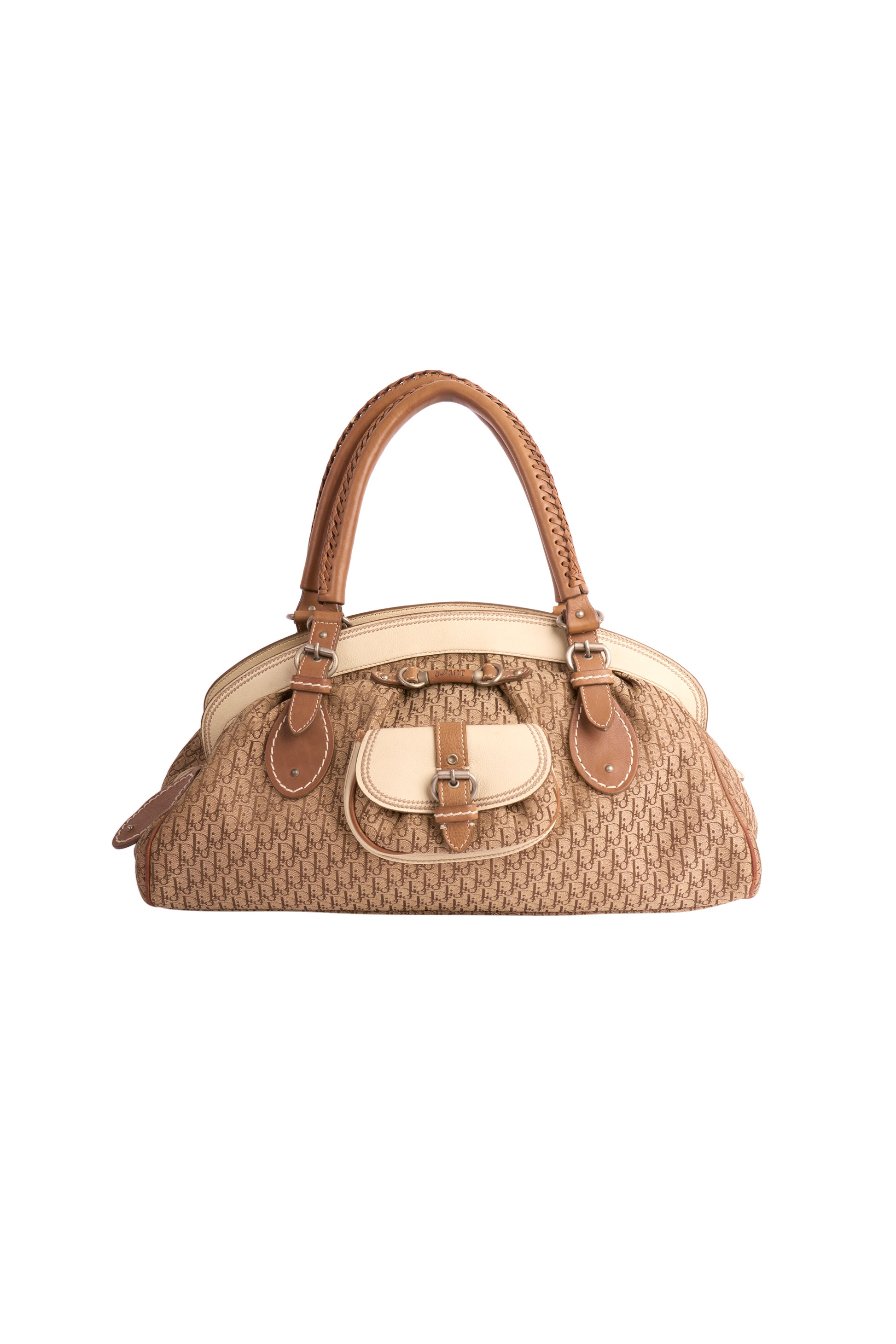 Vintage Christian Dior 2000's Diorissimo trotter Bag. Features a beige monogram cloth canvas and light beige leather frame , Small front pocket, internal zip pocket and others compartments, Dior logo at the front. Fastens with a zip . In excellent vintage condition.