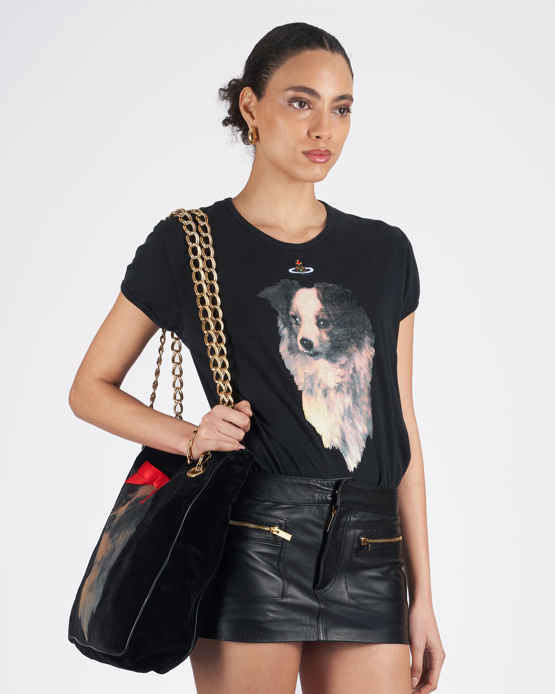 Vivienne Westwood vintage Fall Winter 1993 dog print t-shirt. Features short sleeves and round neckline with dog print and embroidered orb on the chest. In excellent vintage condition.
