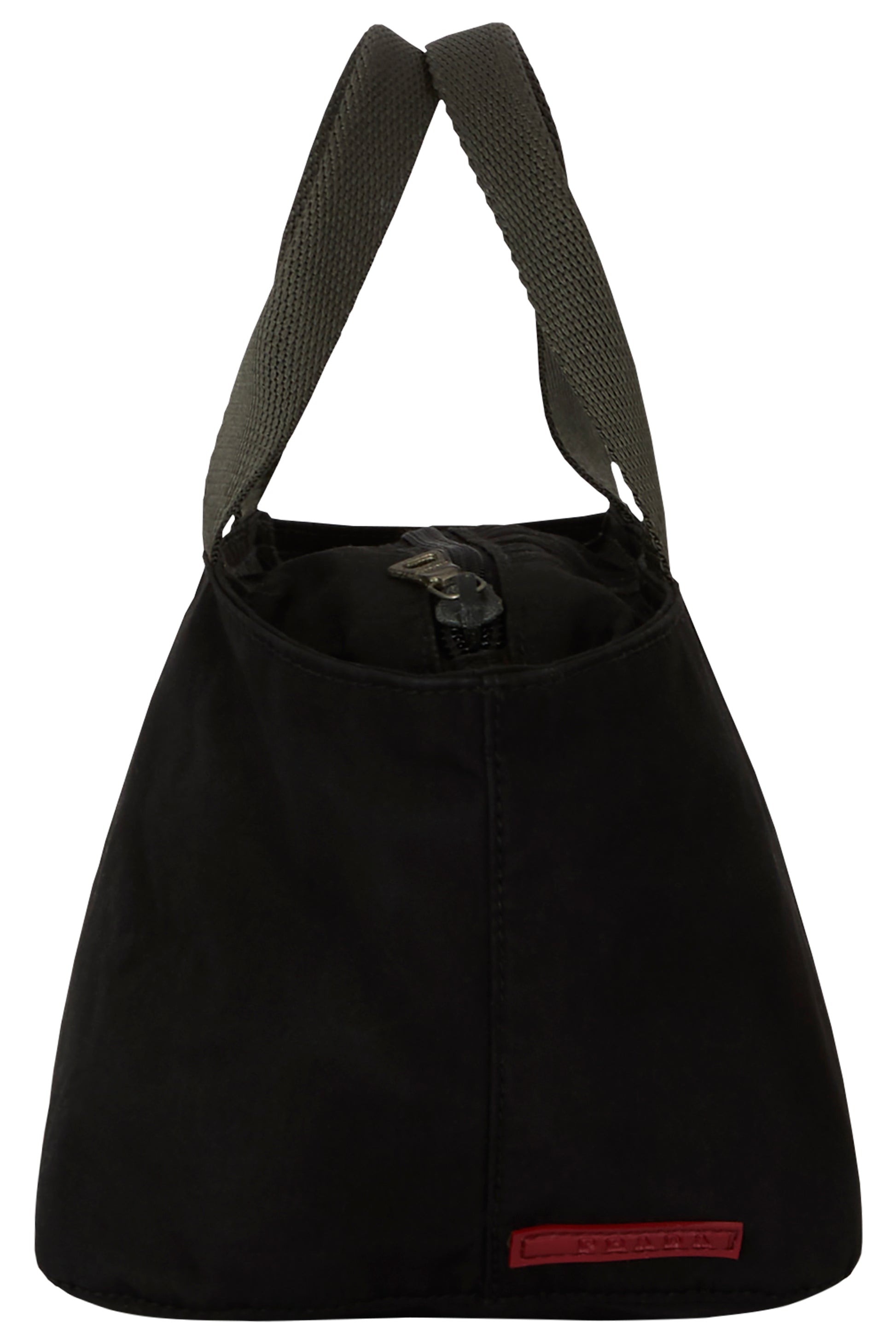 Vintage Prada 2000's black mini tote bag. Feature a black body matte nylon fabric , grey top handles . Main compartment with a grey lining. Fastens with a top zip closure.