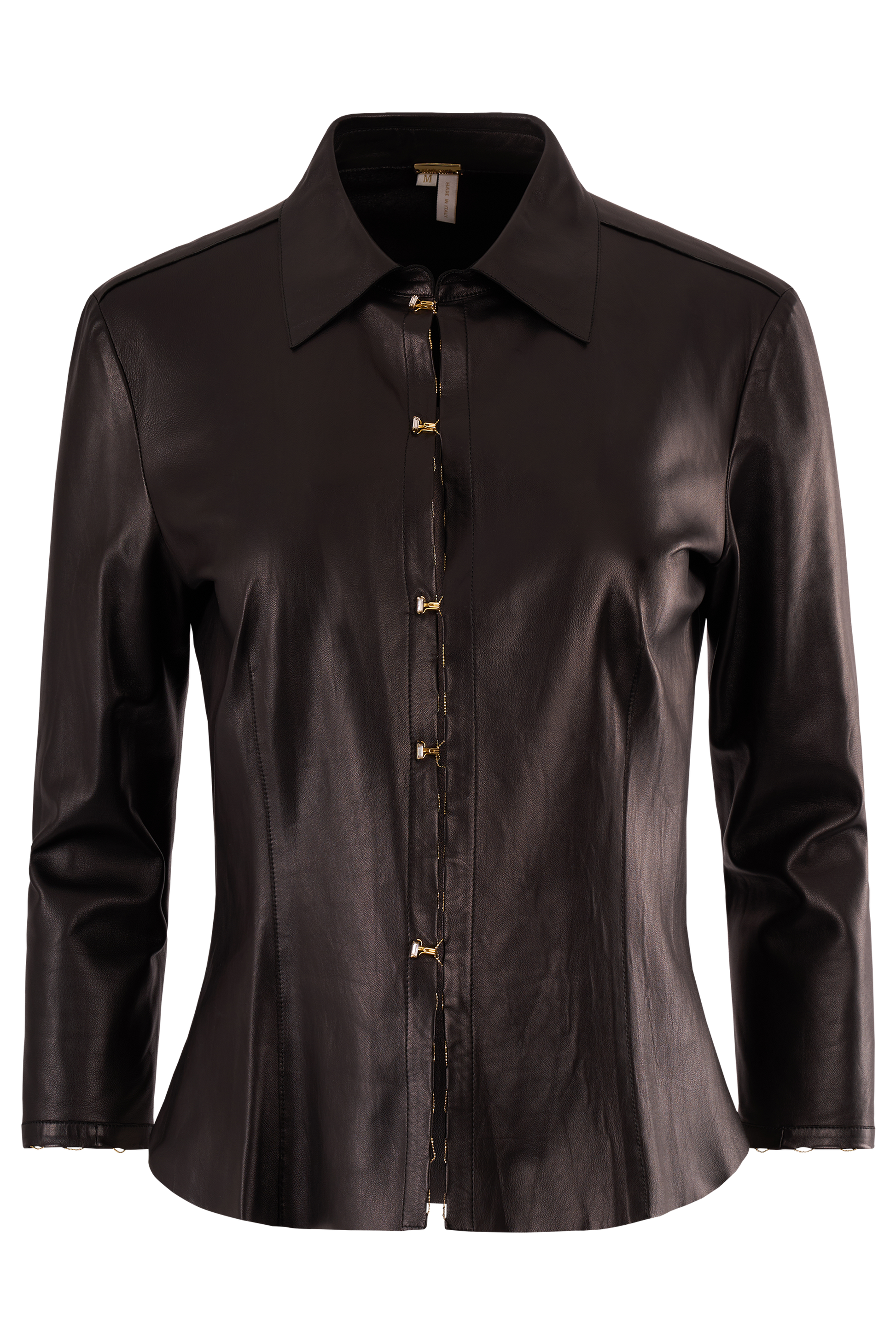 Vintage Roberto Cavalli 2000's Black Leather Shirt