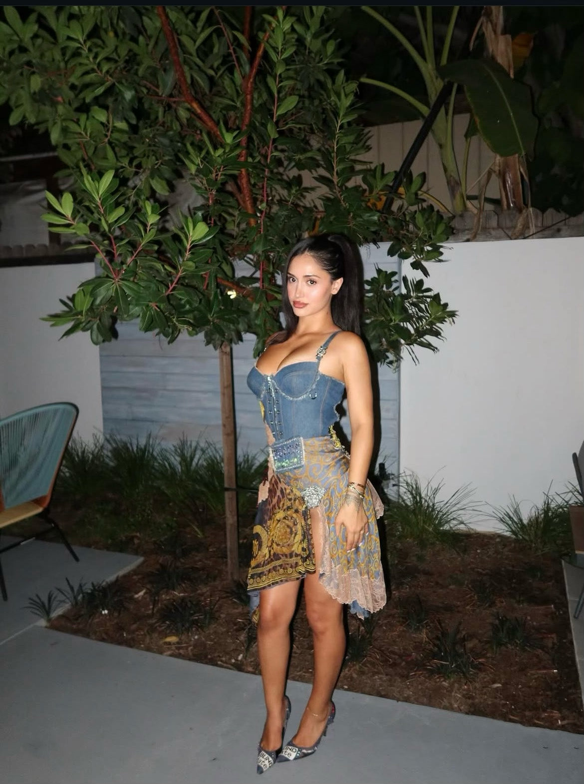 Vintage Versace Sping Summer 2005 Chaos Couture Embellished Denim Dress. This very rare dress feature a denim corset bodice with underwire cups and zipper details , iconic Medusa face patch and rhinestone embroidery. Combined Versace classic scarf print, leopard, lace and mesh details . Raw hems and distressed detailing. Denim crossback, and fastens with a concealed side zip .