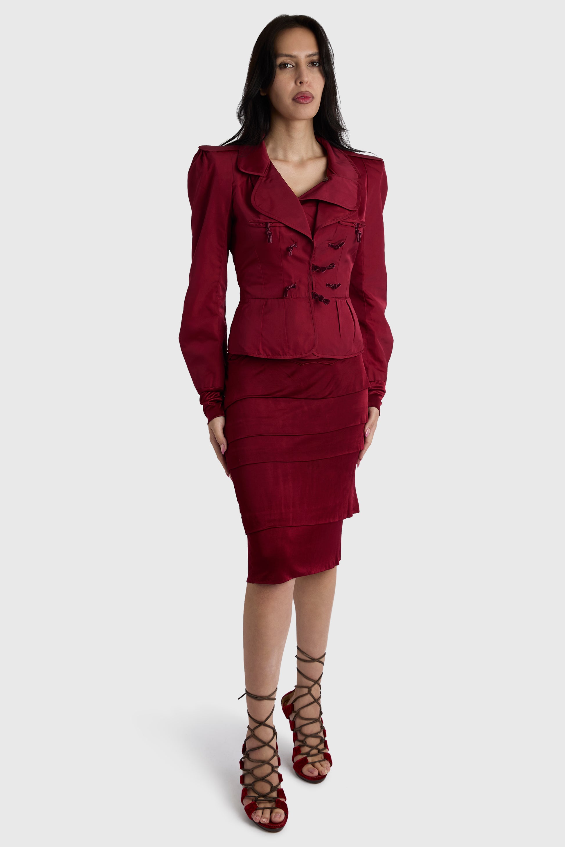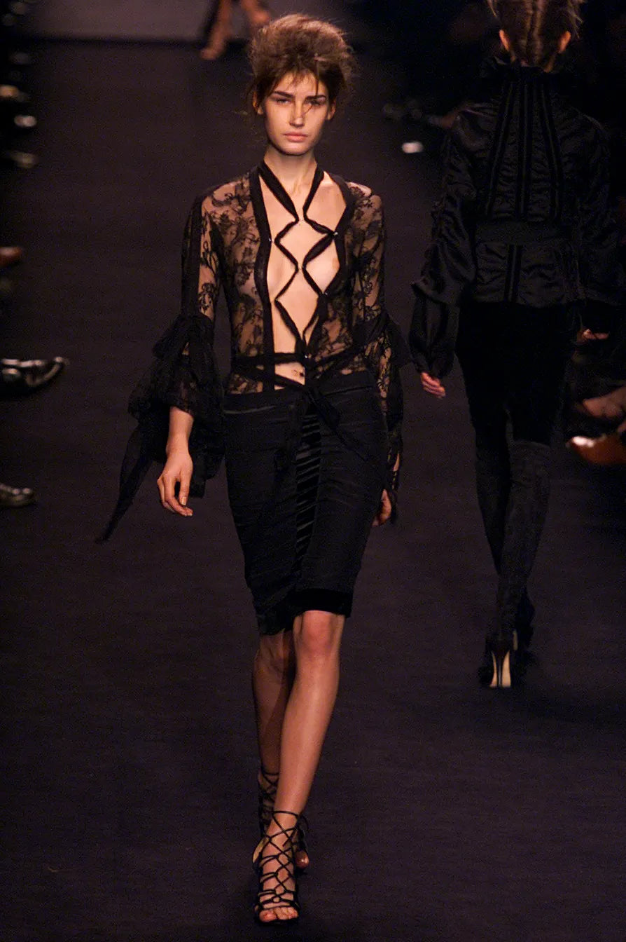 Vintage Yves Saint Laurent F/W 2002 Runway Red Velvet Lace Up Heels